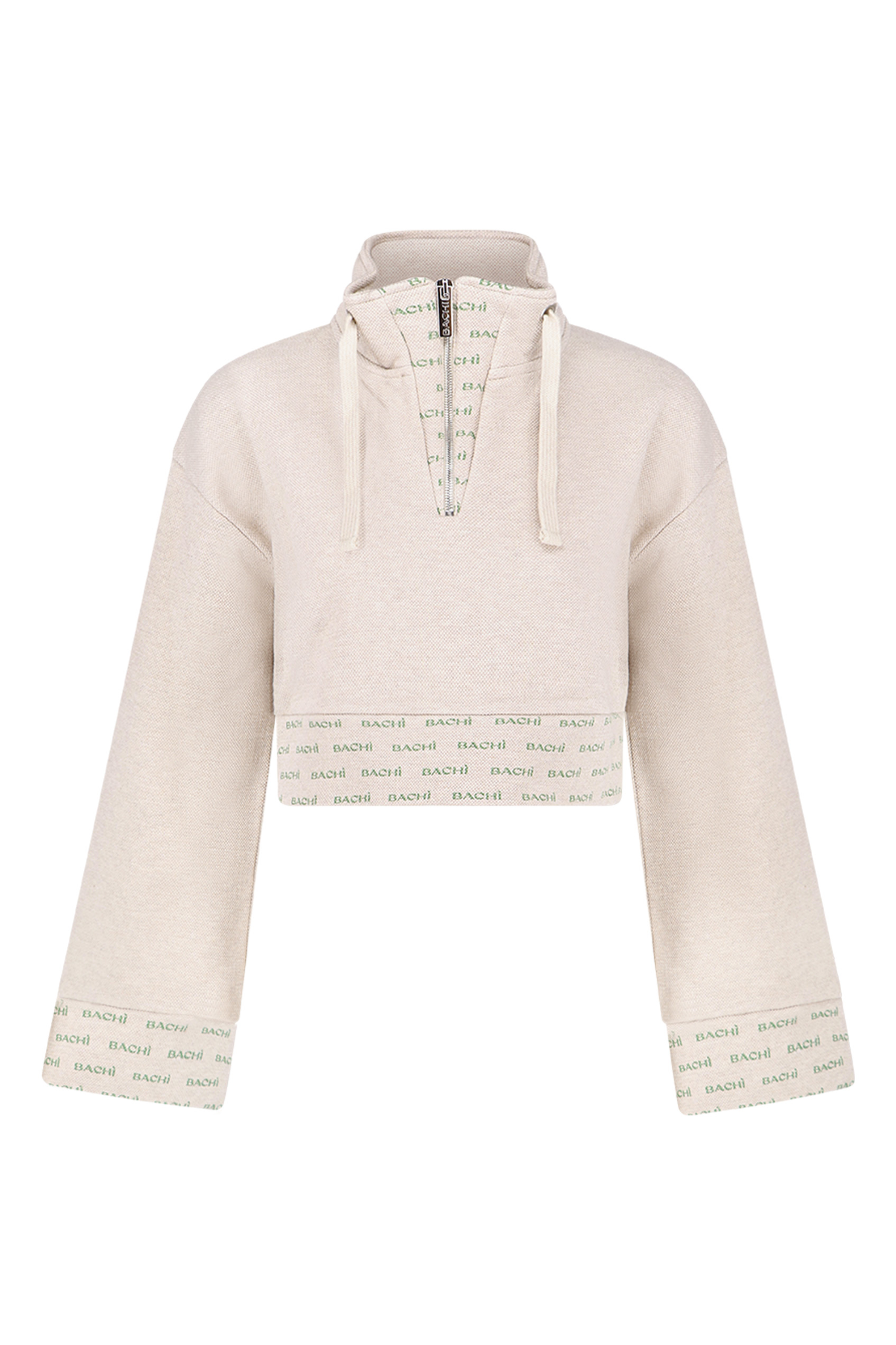 Raw and stylish on the outside, fluffy and cosy on the inside. This oversized and cropped beige sweater is made for comfort and style. The neck collar is designed with a fine zip and stamped with the BACHÌ logo.