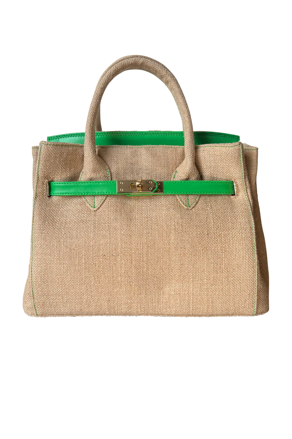 The béret bag is made of jute. It’s 100% environmentally friendly. It’s the perfect fit for any woman type. Having a bright yellow inside lining, the bag's details add on to the full summer feeling. Being 100% handmade, the stitching and details are impeccable. It’s one of the gems throughout our le sable dessert.