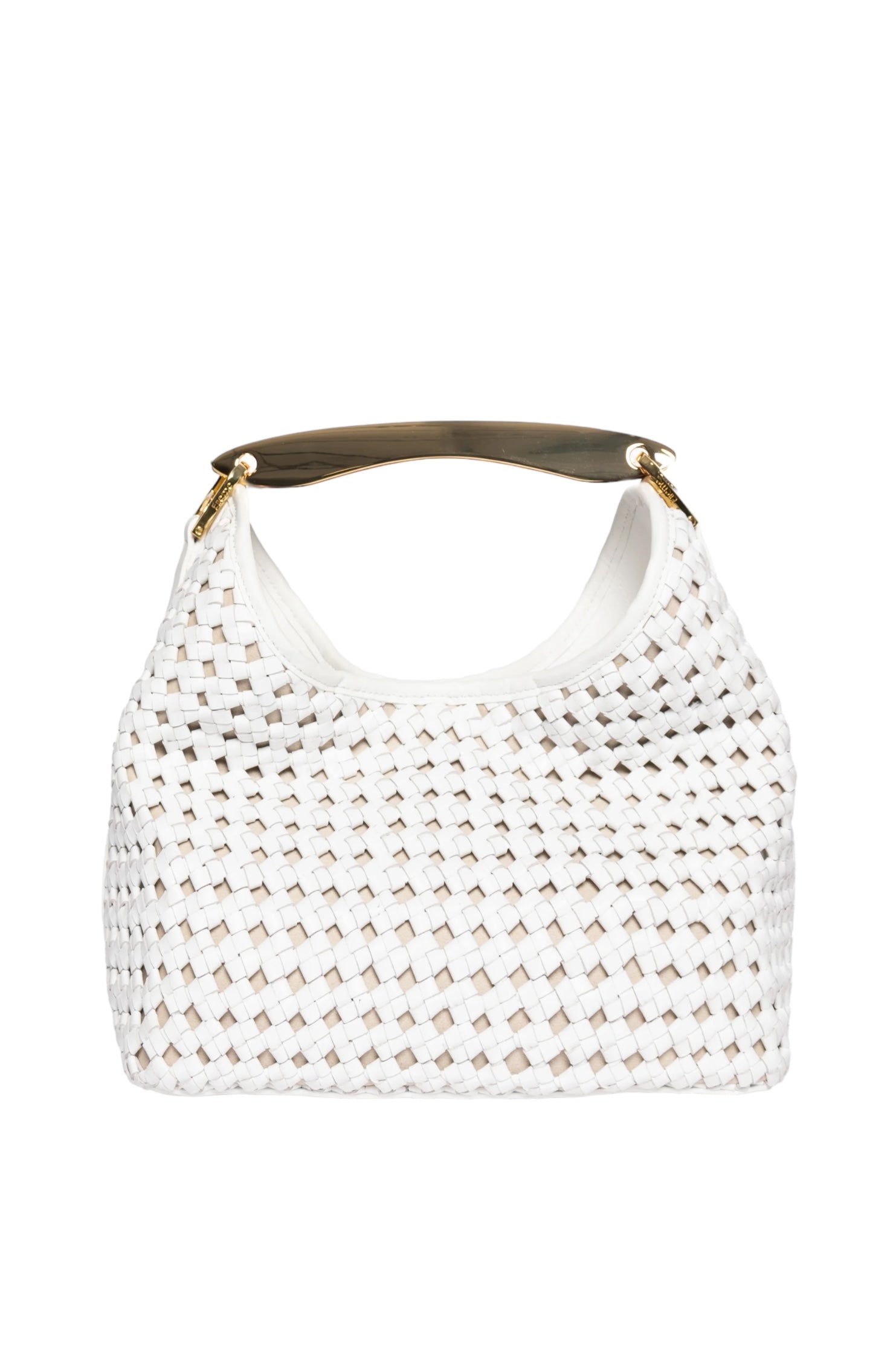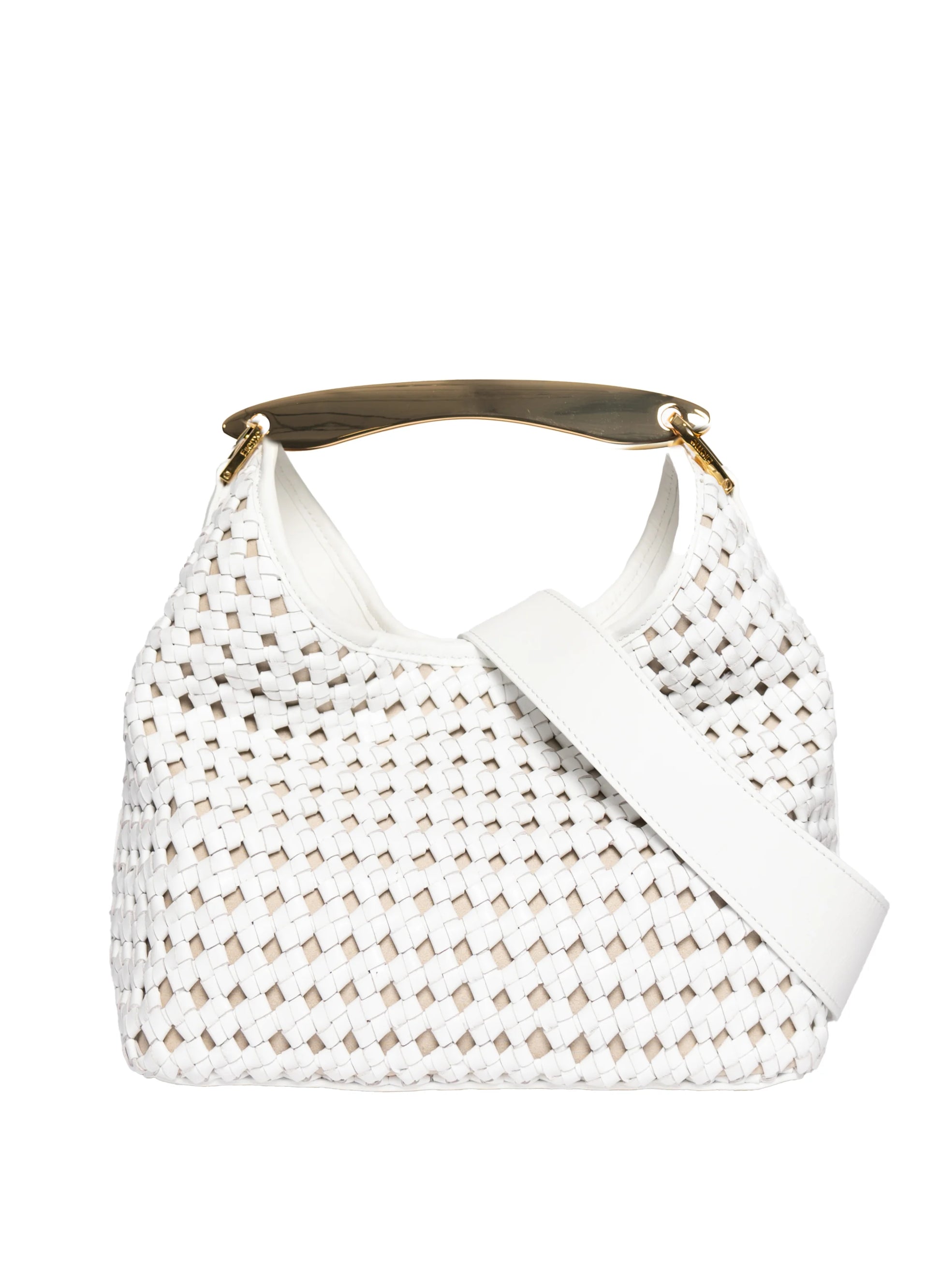A structured yet soft tote bag featuring a single 18K gold plated top handle