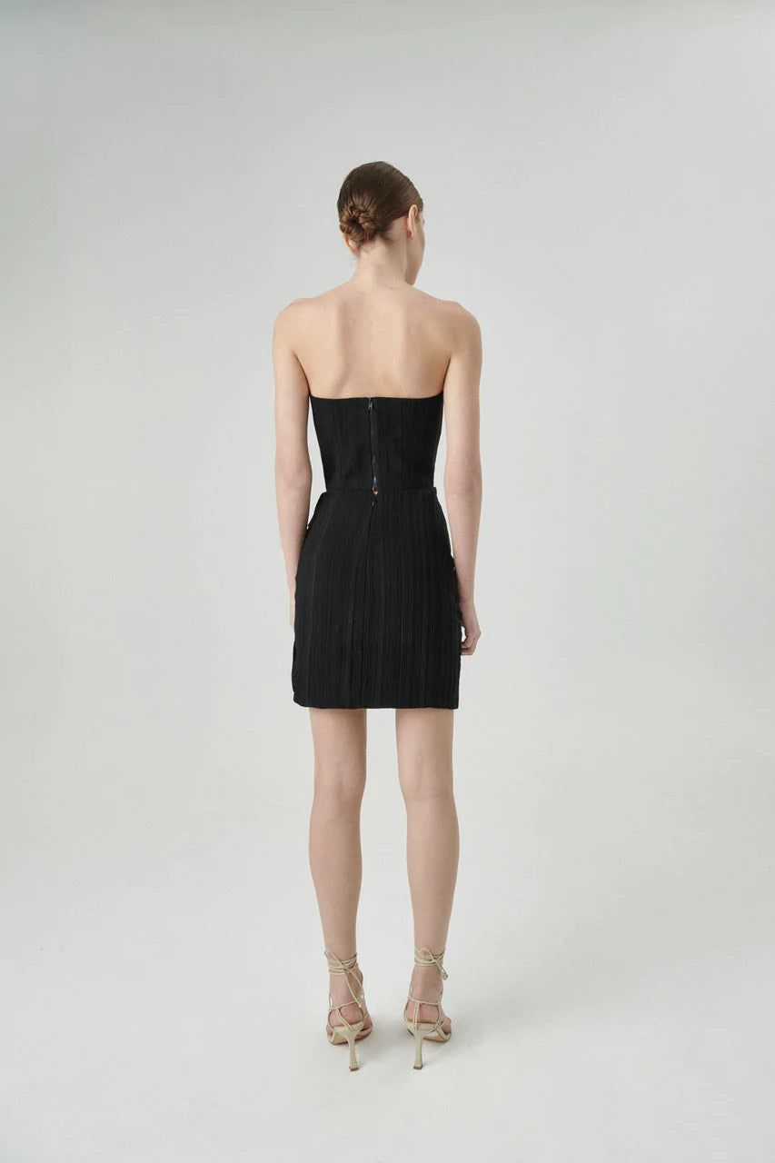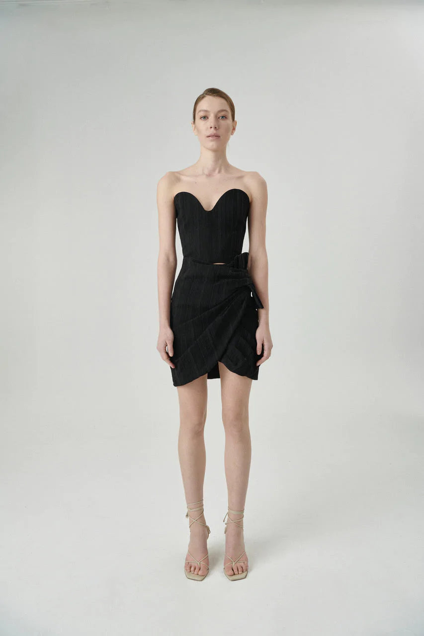 Black bustier with zipper closure at the back. It is a body-fit mold.