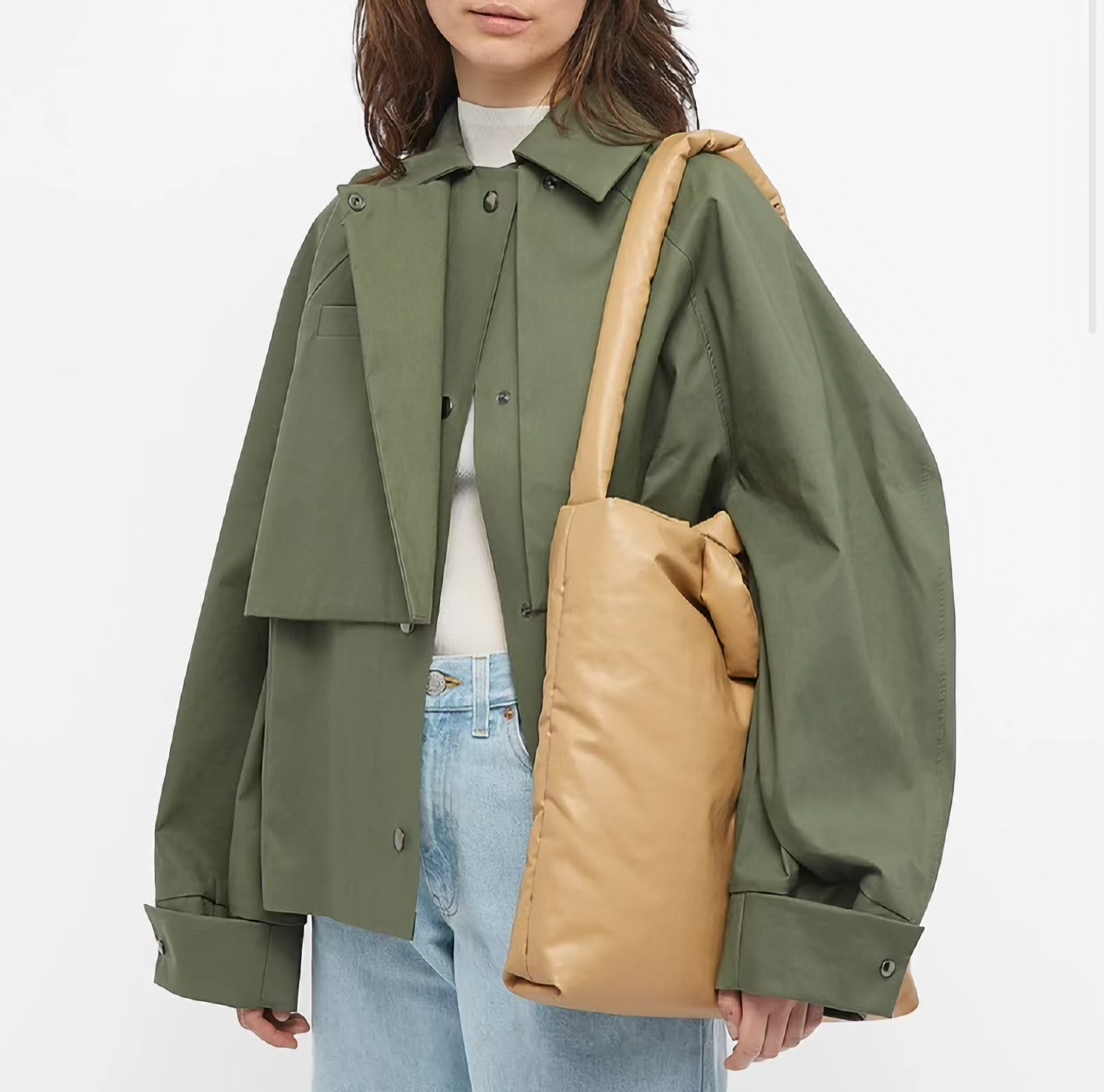 The Pillow bag medium is crafted from the signature oil coated cotton-blend canvas in mud. The bag features two lengths of straps and an internal slip pocket. Carry the bag on the shoulder or across the body using the additional strap. The Pillow bag is soft, cushiony and durable, designed to meet the needs of modern-day life.