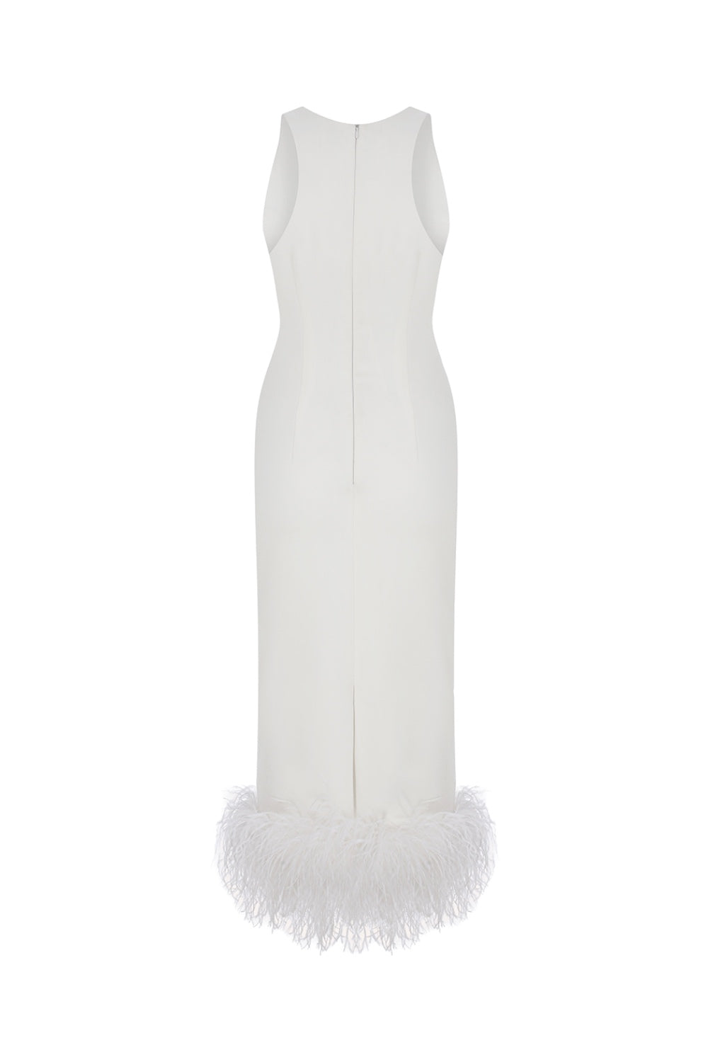 Puri - White Midi Dress With Feather Trim