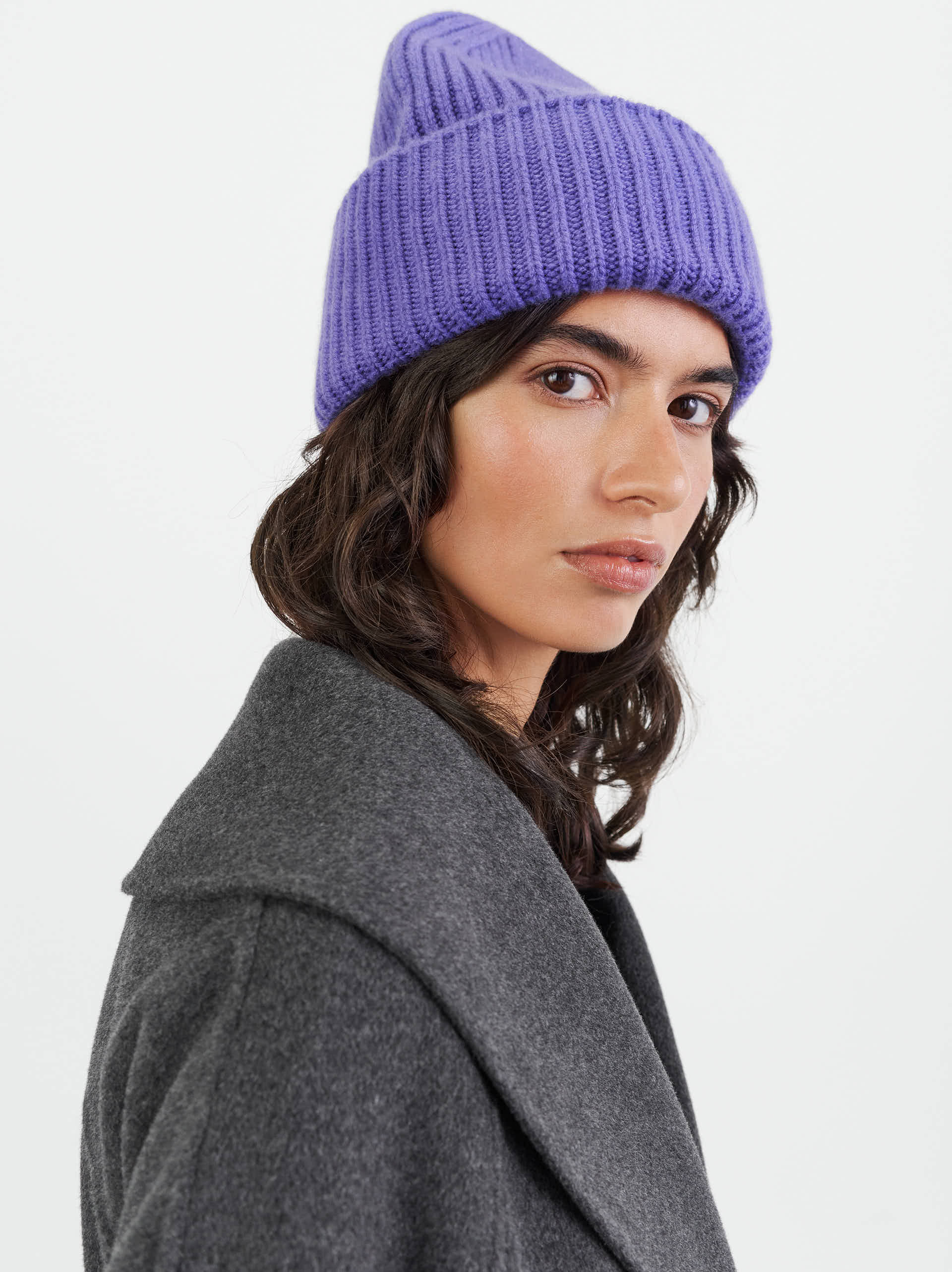 A ribbed beanie knitted in 100% cashmere. One size and unisex.