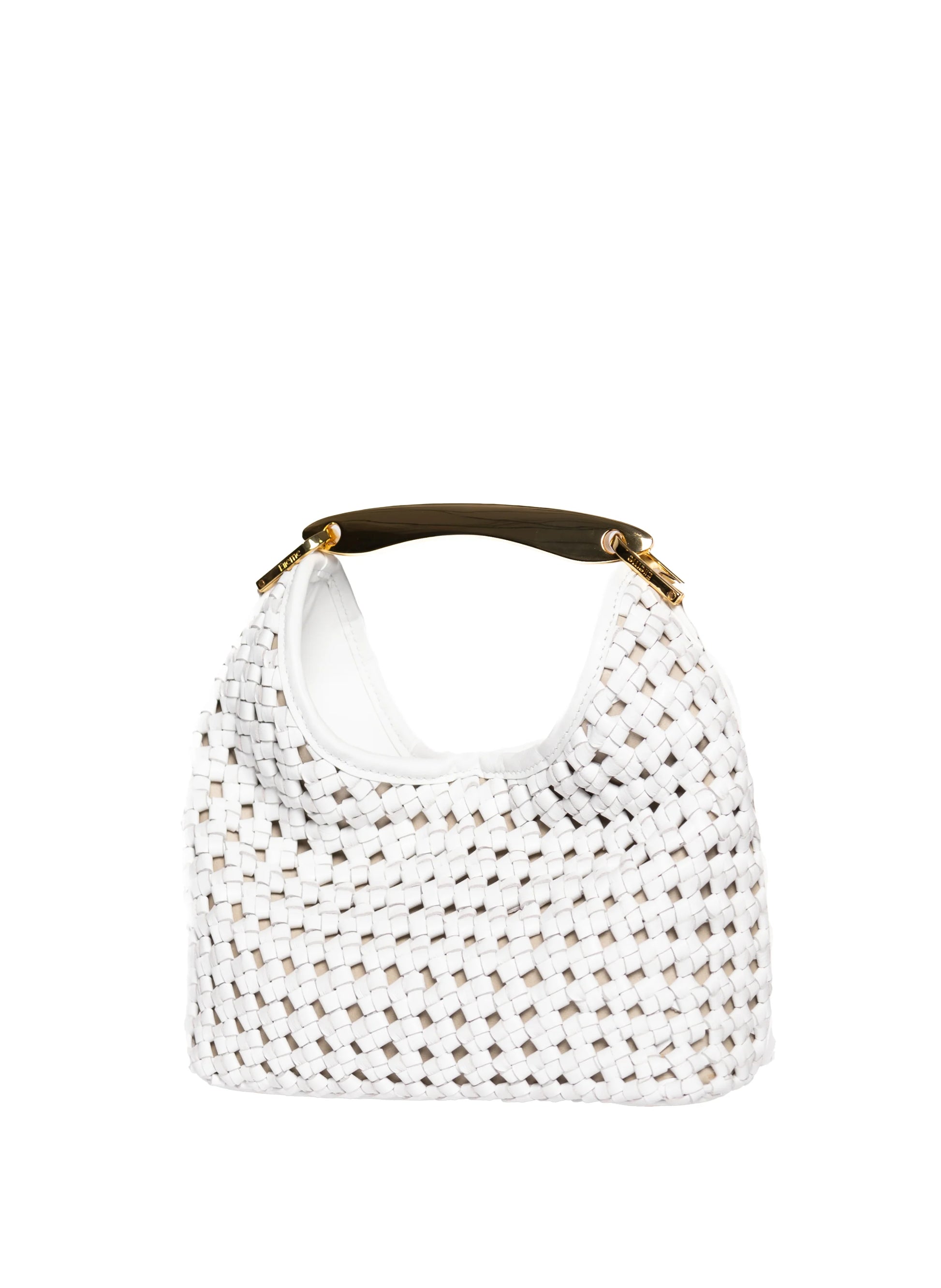 A structured yet soft tote bag featuring a single 18K gold plated top handle