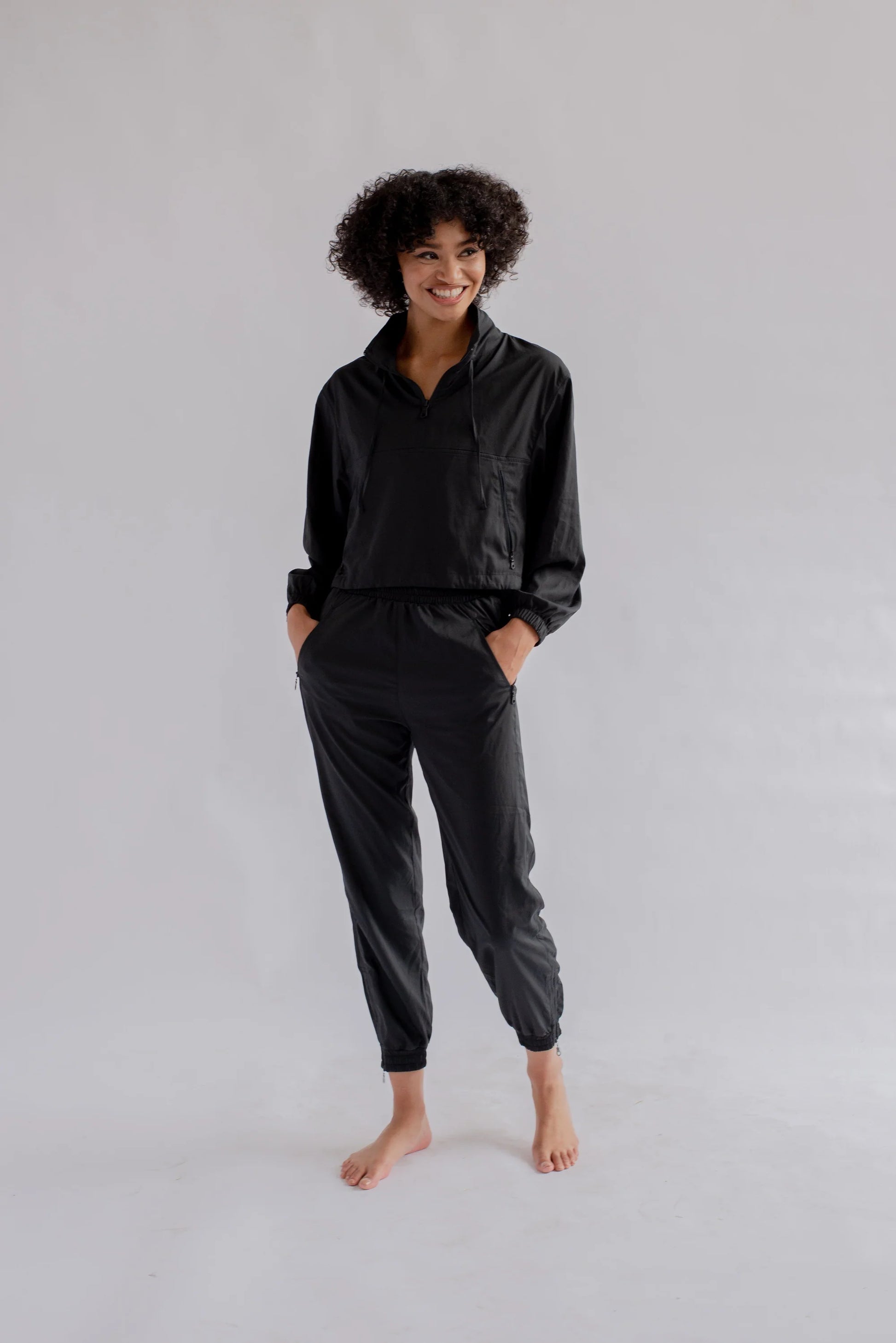 Don't forget to stretch. The Summit Track Pant is a high waisted pant you can easily layer over your leggings or shorts for some added warmth. They also have nifty ankle zippers so you don't have to take your shoes off when taking them off (a big plus for when your hike starts in the cold morning and goes into the hot afternoon). To take care of it, machine wash cold with like colors and line dry flat. Learn more.