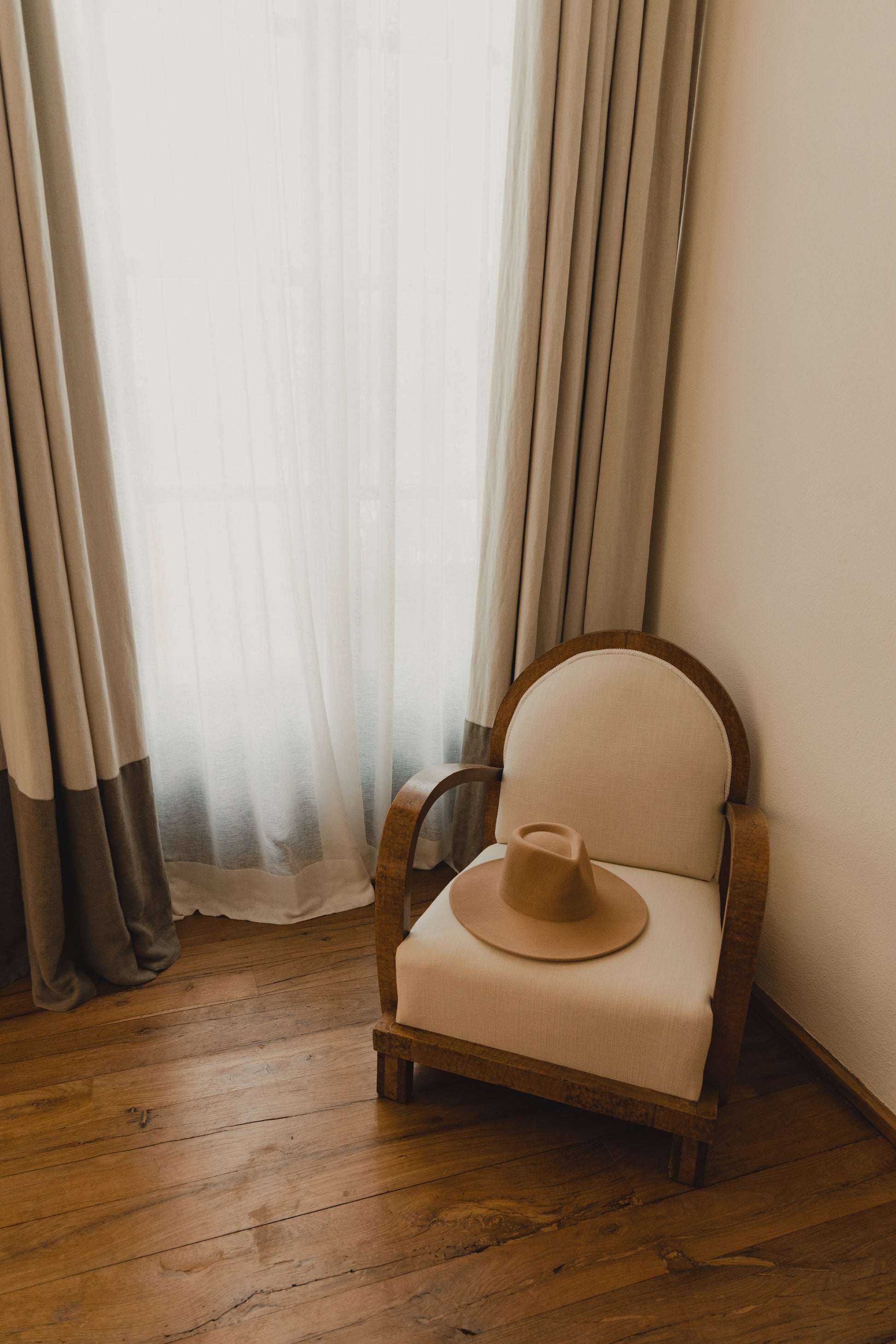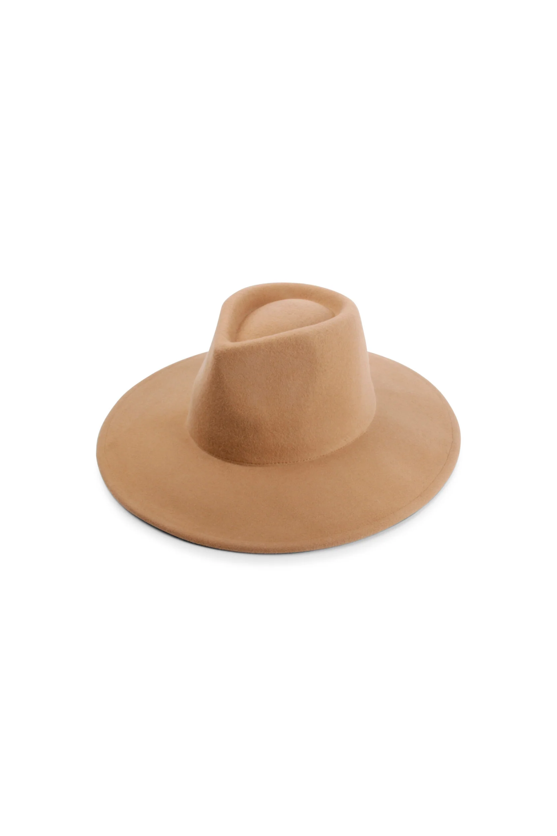 This is our Doha hat. A fedora variant characterised by a teardrop crown and a wide brim.