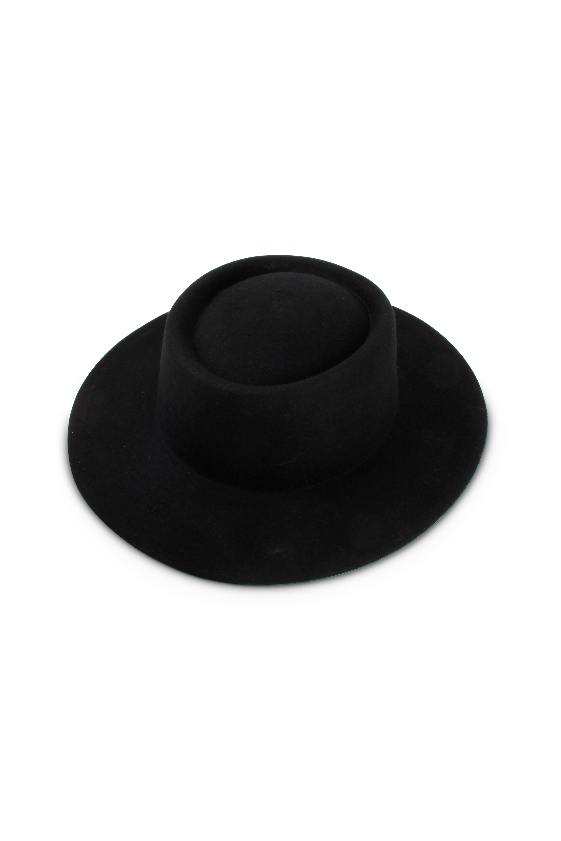 This is our Maron hat. A minimal variant characterised by a round crown and a wide brim.