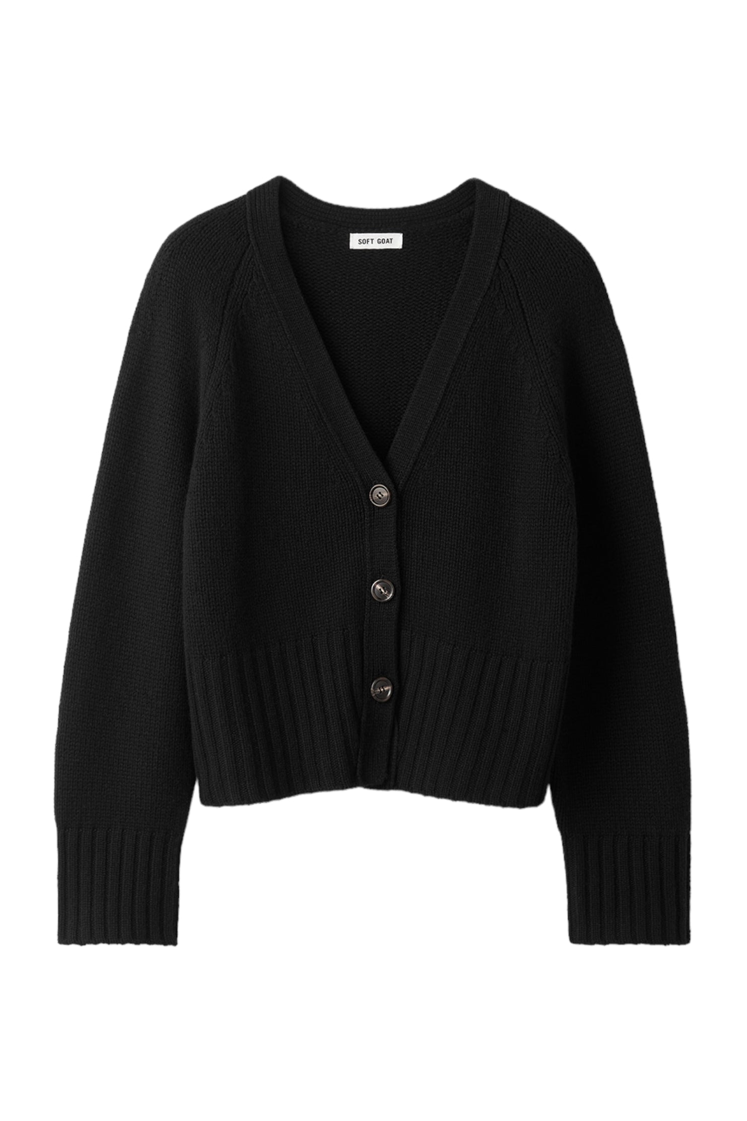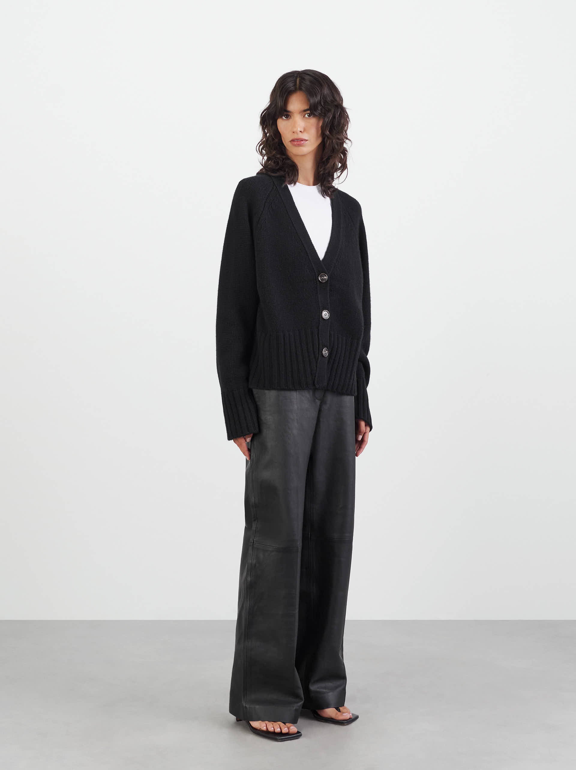A chunky knitted cardigan with v-neck and buttons. Knitted in 100% cashmere.